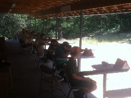 Boy Scouts from 11 troops in Virgin Valley sponsored by the Mesquite Nevada Stake of the Church of Jesus Christ of Latter-day Saints participated in summer camp at Kolob near Zion National Park the week of June 20 -25. Seventy scouts ages 12-14 went camping and twenty scouts ages 15-16 went as junior staff to help with camp activities. Each morning started with a flag ceremony and a patriot story. Nearly 300 merit badges were earned including first aid, environmental science, archery, rifle shooting, wilderness survival, scouting heritage, emergency preparedness, orienteering, leather work, wood carving and basketry. Eleven-year-old scouts were invited to come Tues. and Wed. staying overnight on Tuesday to earn one night for their camping merit badge. They worked on their trail to first class rotating through 6 stations learning maps, first aid, identification of plants, knot tying and fire starting among other things. Jeff Hughes, a counselor, spent many hours helping the 11-year old scouts pass their scout rank, tenderfoot, and second class ranks.