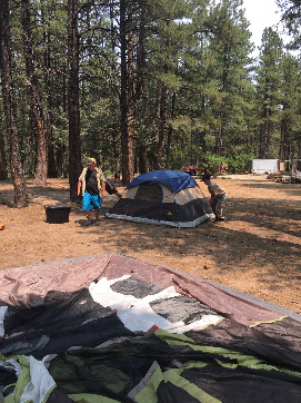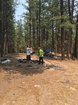 The scouts did a 5-mile hike from the top of Kolob down the mountain to Kolob Kamp the first day. After setting up camp they had 5 rotations of fun and games consisting of knot tying, water balloon contest, a trust fall and other skills. Wednesday they had a flag retirement ceremony with Pres. David Leavitt as the MC. He told the story of the battle of Fort McHenry in 1814 and the writing of the Star Spangled Banner. He also told the story of the prisoner of war in Vietnam who after being punished for having a tiny American flag sewn inside his shirt returned to his cell and immediately started sewing a new American flag with a bamboo needle.