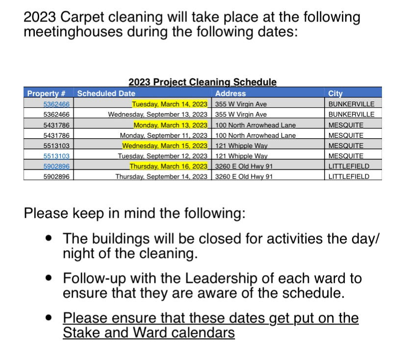 Carpet Cleaning Schedule
